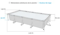 Intex Piscine Tubulaire Metal Frame Junior Rectangulaire 2,20 X 1,50 X 0,60 M