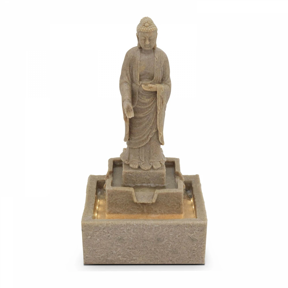 Fontaine Bouddha Debout En Pierre Reconstituée Avec Led