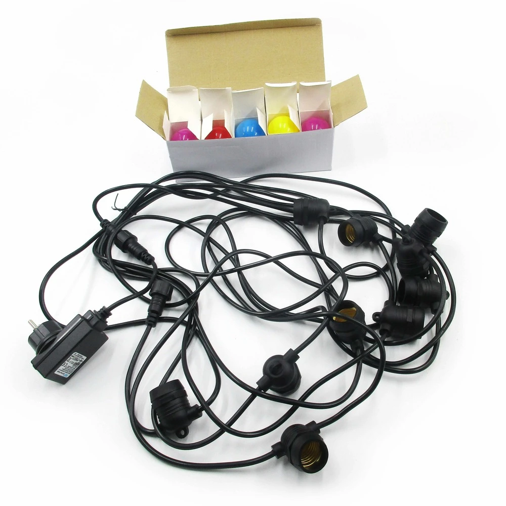 avec ses 10 ampoules de couleurs, la guirlande guinguette multicolore est l’accessoire qui apportera une touche festive pour vos soirées en plein air. D’une longueur totale de 10 mètres, avec une séparation d’un mètre entre chaque ampoule, la guirlande lumineuse s’accroche facilement grâce à son crochet et se branche sur une prise standard 220v. Elle comporte 2 ampoules led de chaque couleur – vert, bleu, jaune, rouge et violet – qui offrent une lumière douce et agréable à 150 lumens pour le confort des yeux. Conçues en plastique, celles-ci sont utilisables en intérieur comme en extérieur puisqu’elles sont étanches à la poussière et aux éclaboussures. La guirlande guinguette led multicolore possède également une extension 12v qui permet de la rallonger pour décorer tout le jardin.