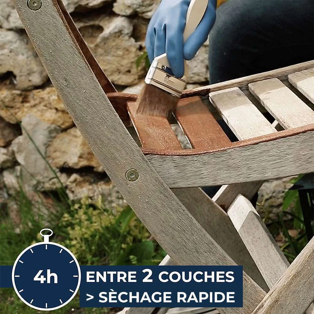 Votre mobilier de jardin en bois a pris avec le temps une patine que vous n’aimez pas? La teinte qui vous avait séduit quand vous aviez choisi votre mobilier a laissé place à un coloris terne et grisonnant? Optez pour cette huile rénovatrice spéciale bois grisé. Sa teinte teck réchauffera le coloris vieillissant.