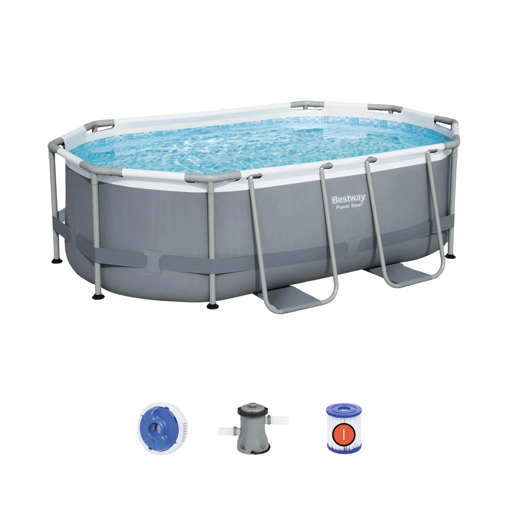 Kit Piscine Complet Bestway – Spinelle Grise – Piscine Ovale Tubulaire 3×2 M. Pompe De Filtration Et Kit De Réparation Inclus