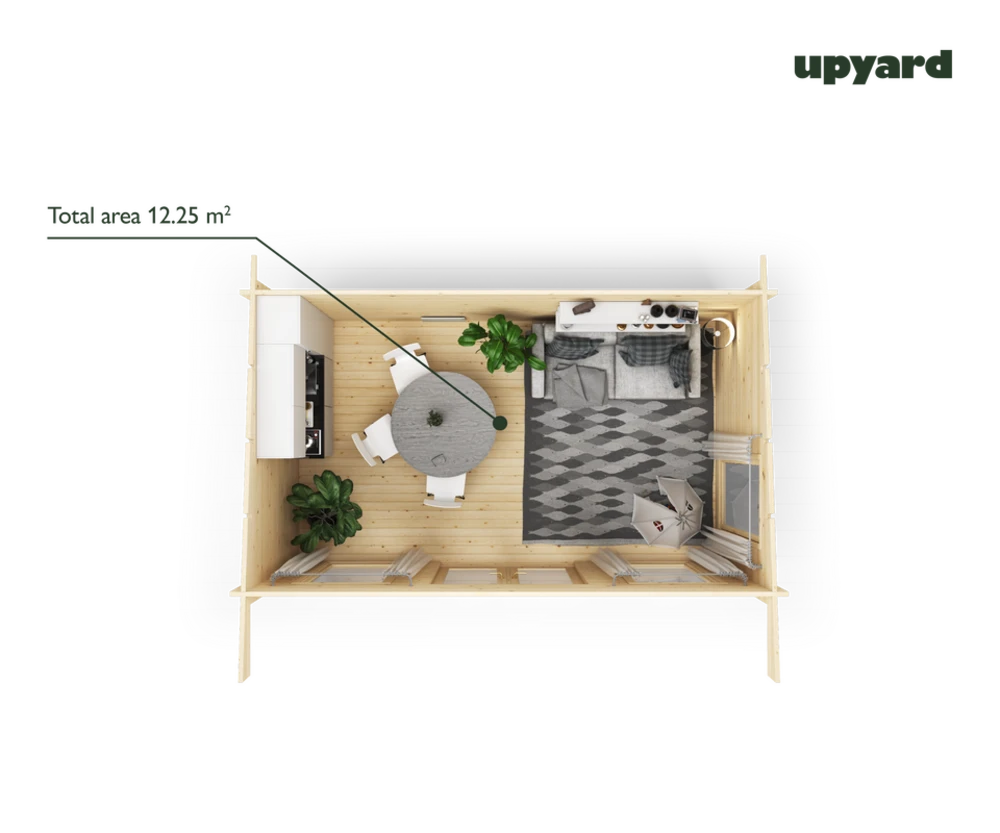 la maison de jardin au design moderne chenin d’upyard est en bois et offre une superficie de 12,25 m2 pour votre confort de loisirs. Les grandes et spacieuses maisons de jardin sont de plus en plus populaires de nos jours, non seulement pour ranger les outils de jardin hors saison, mais aussi comme lieu de détente. La maison de jardin en bois présente un design confortable et moderne, vous permettant de créer un espace protégé et accueillant avec des portes largement ouvrantes pour profiter de la vue et du temps chaud estival. La maison peut être utilisée non seulement dans votre jardin, mais également au bord d’un lac ou à la campagne, où vous pourrez profiter de vos loisirs.