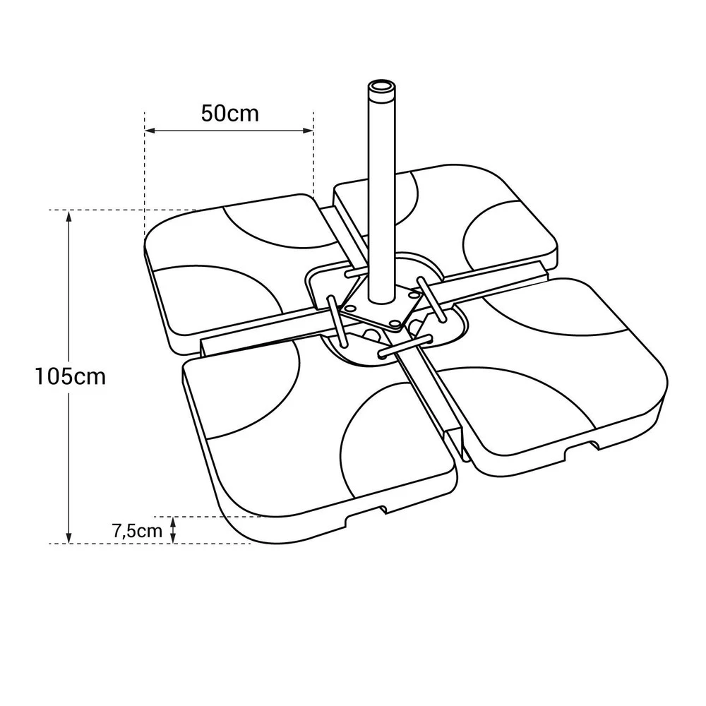Ce lot de 4 dalles est idéal pour les parasols déportés avec pied en croix.