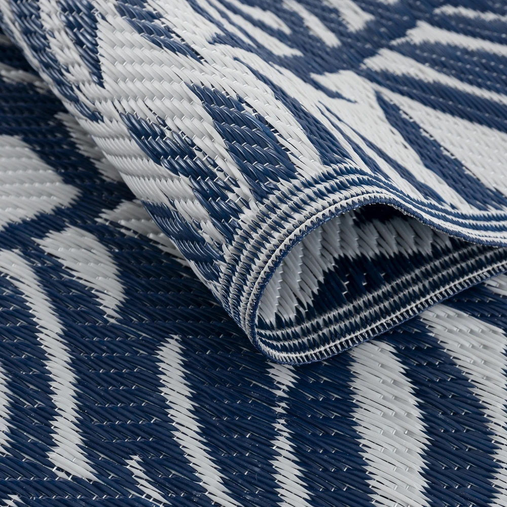Ce tapis outdoor aux motifs exotiques apportera une note tropicale à votre extérieur. Celui-ci est en plastique tressé recto/verso. . Couleur peps et ensoleillé de quoi donner un air de vacances à votre espace outdoor. Jouez avec son style graphique en ajoutant du mobilier en rotin, une lanterne en osier… Avec ce tapis, laissez parler vos envies d’évasion !. Pendant la saison froide, laissez votre tapis bien au chaud dans un endroit sec. Nos tapis extérieur en polypropylène sont recyclables, résistant aux uv et à la pluie. Caractéristiques :. Dimensions : 120 x 160 cm, 150 x 220 cm et 180 x 280 cm . Coloris : bleu, turquoise, noir. Composition : 100% polypropylène – 400gr / m2 – résistant aux uv. . Vendu à l’unité.