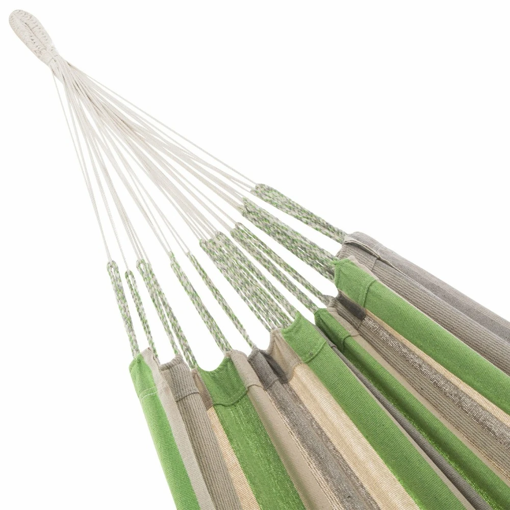 Toile De Hamac Rayée – Citron Vert / Gris Clair / écru. 1 Personne. 100% Polycoton. 240x160cm