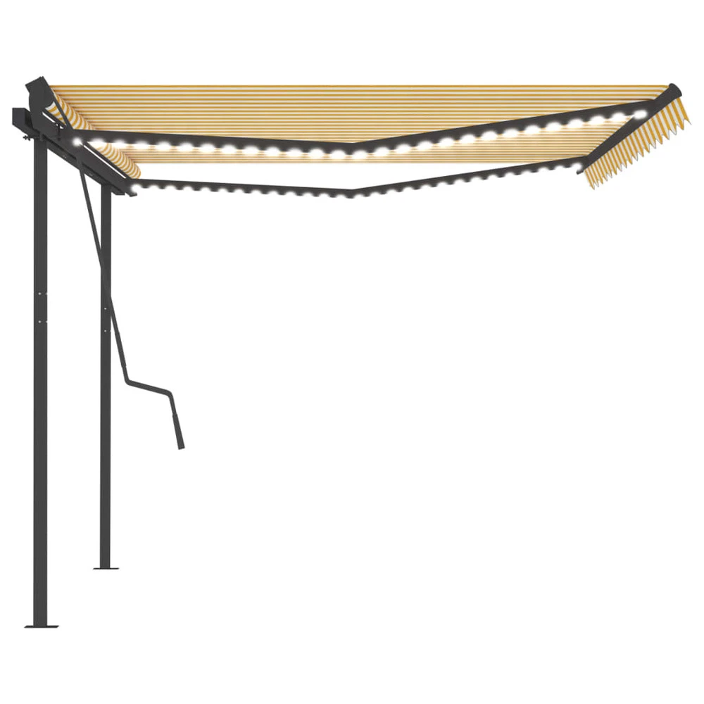 Créez un endroit agréable et frais sur votre terrasse et protégez-vous des rayons uv avec cet auvent rétractable automatique ! Cet auvent d’extérieur, construit avec un cadre en aluminium enduit de poudre résistant à la rouille, est léger mais robuste. Le poteau en fer fort le rend stable. Le tissu de l’auvent de terrasse est en polyester haute densité avec revêtement de pu, résistant à l’eau et aux uv. L’angle et la hauteur peuvent être ajustés pour répondre à vos besoins spécifiques. Vous pouvez facilement ouvrir et rétracter l’auvent rétractable automatique avec la télécommande incluse. De plus, la longue manivelle peut contrôler l’auvent en douceur. Il est également équipé d’un capteur de vent qui peut fermer votre auvent automatiquement les jours venteux. De plus, les lumières led fournissent un éclairage économe en énergie la nuit.