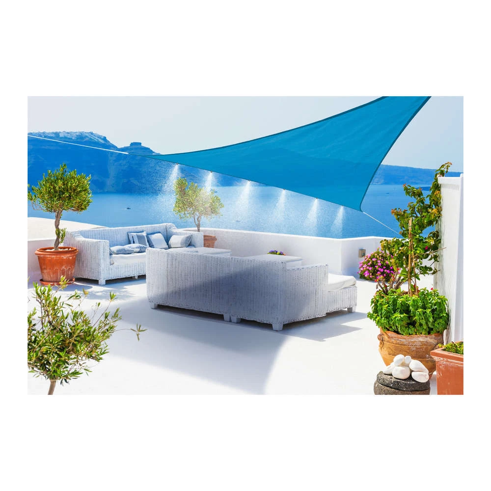 Qu’il est agréable d’avoir un petit peu d’ombre lors des jours de plein soleil ! Optez alors pour cette grande voile de forme triangulaire qui, accrochée au-dessus de votre jardin, sera votre refuge préféré pour ne pas étouffer. Au coloris intemporel et ornée de petits brumisateurs pour rafraîchir, elle se montrera vite indispensable chez vous pour profiter au mieux de moments conviviaux en extérieur.